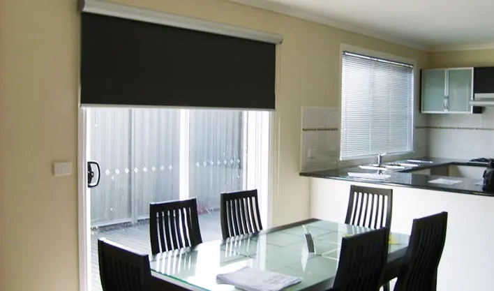 Sunscreen blinds can be used in combination with holland or blockout blinds. These dual blinds then work to provide privacy, light filtering and heat reduction during the day with the sunscreen blind allowing you to see out. At night the holland blind or blockout blind gives you privacy and reduces light entering your room.